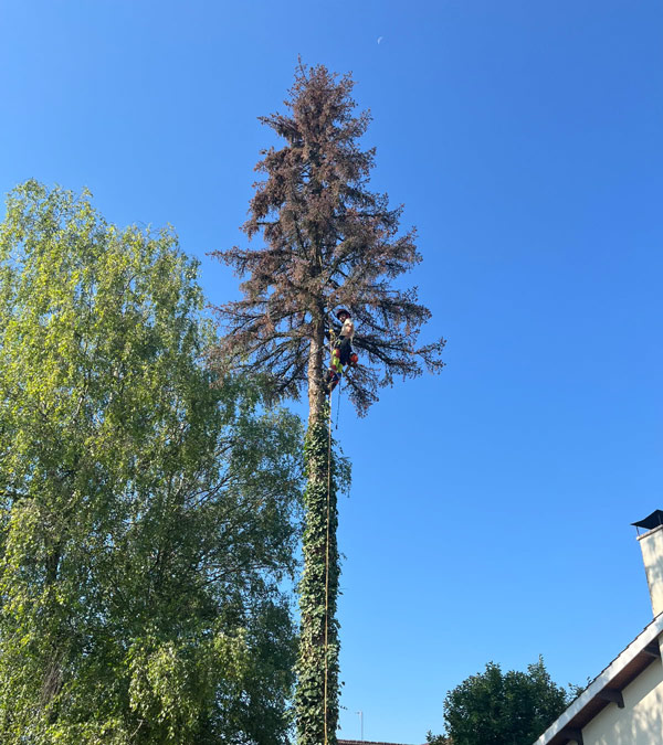 L’abattage, quand il est nécessaire, est réalisé en toute sécurité, dans le respect de votre propriété et des normes environnementales.